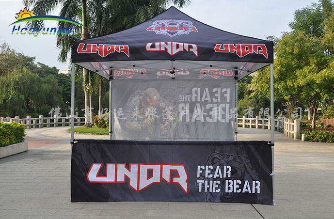帐篷是用铝合金或者铁管的框架来支撑篷布,这种广告帐篷不用中心支柱来撑起篷布,篷布也可以获得适当的张力,从而使帐篷内部的空间更加灵活。帐篷的外部也不用绳子来拉紧篷布,帐篷本身就很稳定牢固。因此广告帐篷可以更靠近高楼、房屋和其他建筑物。